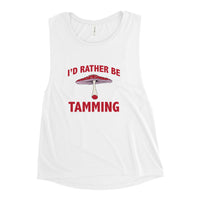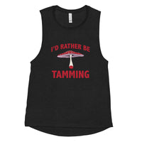 Super soft muscle tank with low cut armholes for a relaxed look. Available in white or black heather. Can be tied or cut for a cropped look as well!